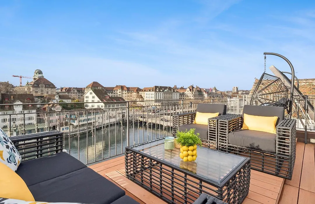 The spacious Old Town Diamond Penthouse Private Rooftop Zurich apartment lies in the Niederdorf district of Zurich and offers swift access to the famous Bahnhofstrasse Pedestrian Street, which is merely 9 minutes' walk away. Situated only 150 m from the Beyer Clock and Watch Museum, this apartment offers a terrace where guests can relax and enjoy the mountain view.